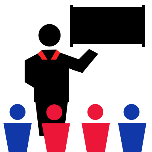 - インフォグラフィック:教育や学習、トレーニングに関するデータを示すインフォグラフィックの中で、講師や教育の要素を表すアイコンとして利用できます。