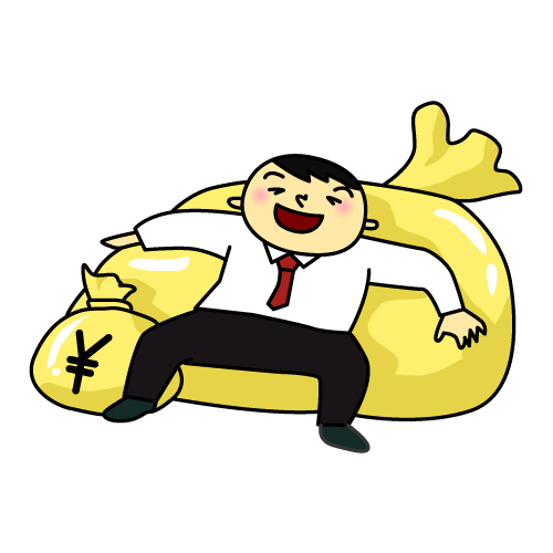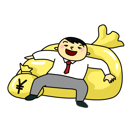 このイラストは、「豊かさ」や「成功」、「達成感」を視覚的に表現するために効果的です。金銭的な成功や目標達成に関するテーマで活用すると、視覚的に説得力のあるメッセージを伝えることができます。