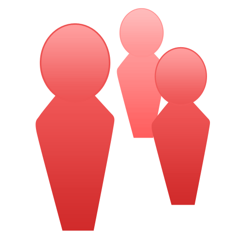 このように、複数の人を表すシンボルとして、さまざまなデジタルや印刷のコンテンツで使用できる汎用性の高いデザインです。特に赤色は目立ちやすいため、強調したいデータや情報に使うと効果的です。