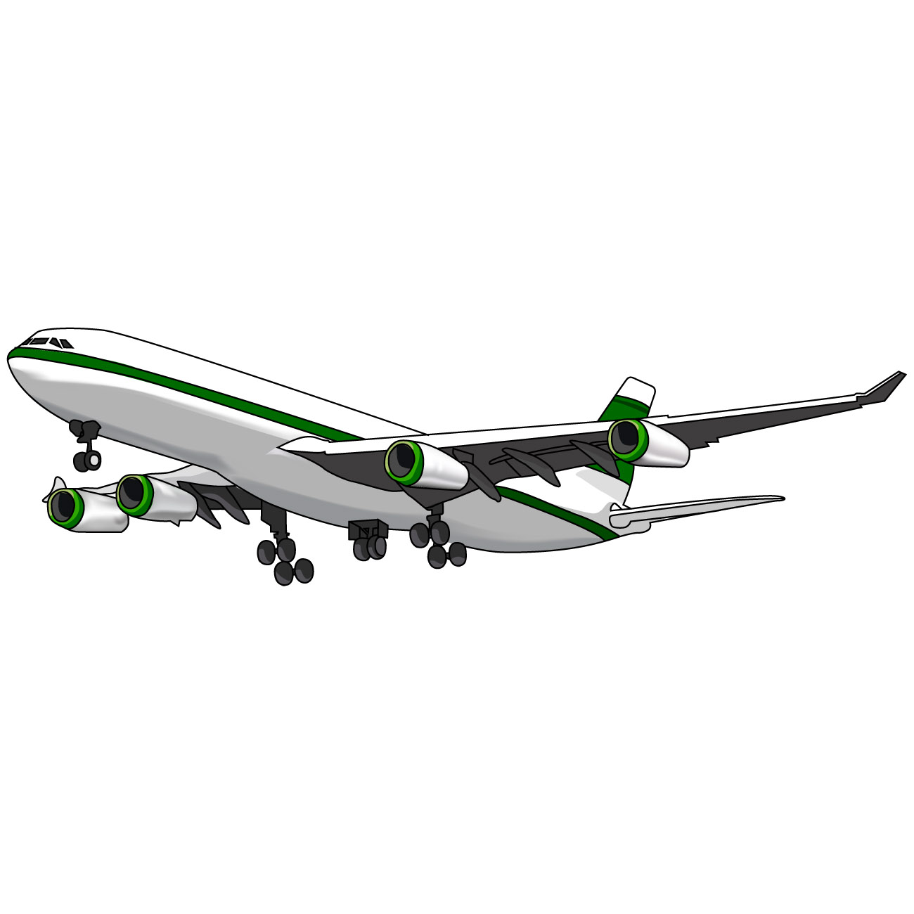 - 飛行機のイラスト05(グリーンの飛行機・左向き)JPG