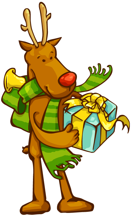 - トナカイのイラスト(プレゼントを持って立つ様子・デフォルメ)JPG