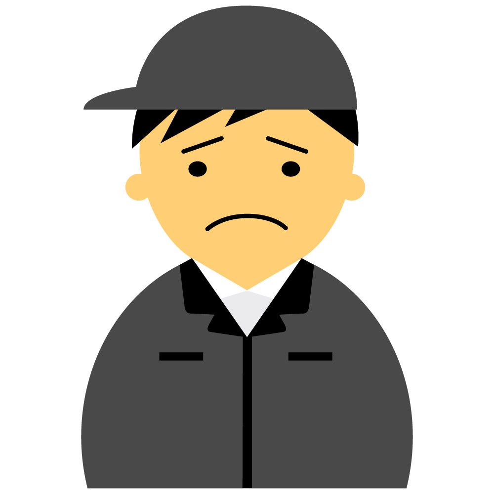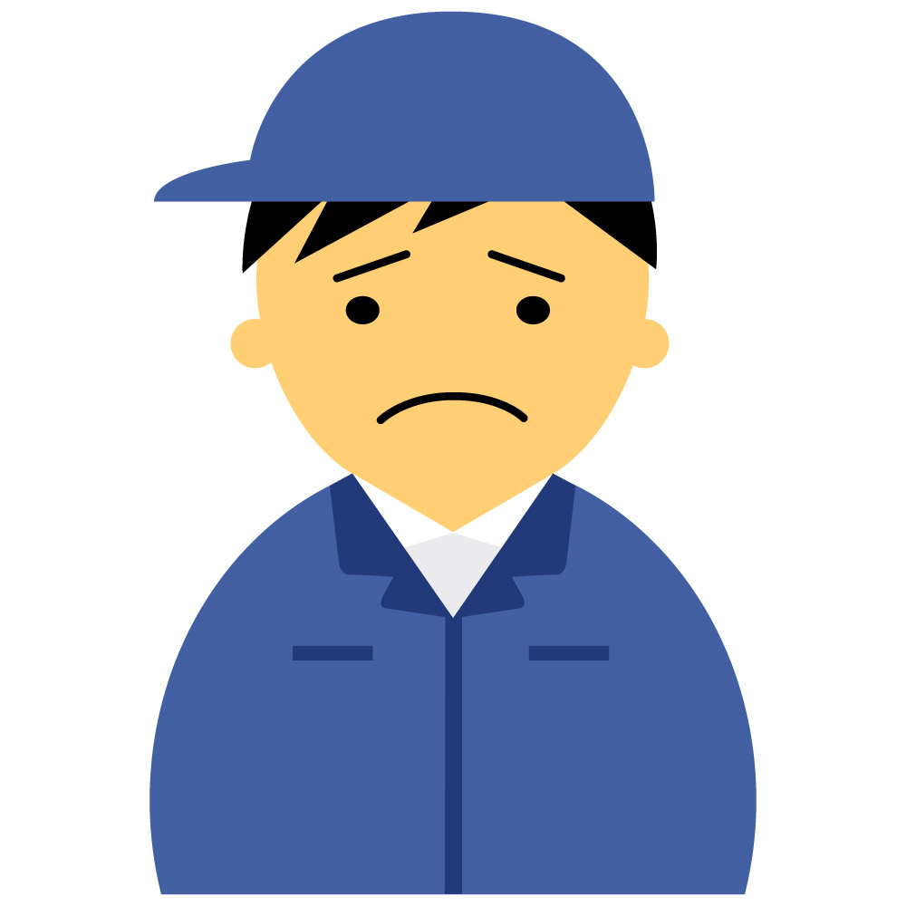 - 【困った顔】作業服の男性20代~30代のアイコン02(黒・黒髪)PNG