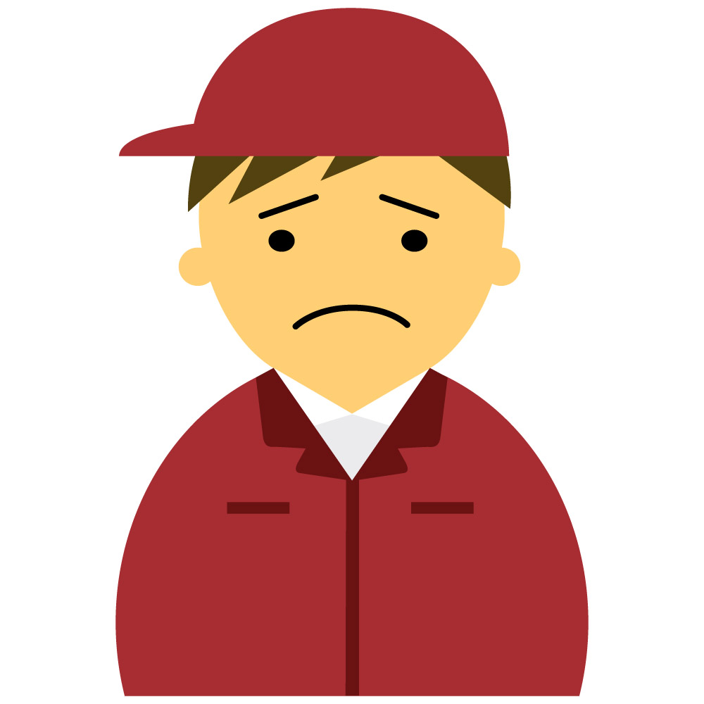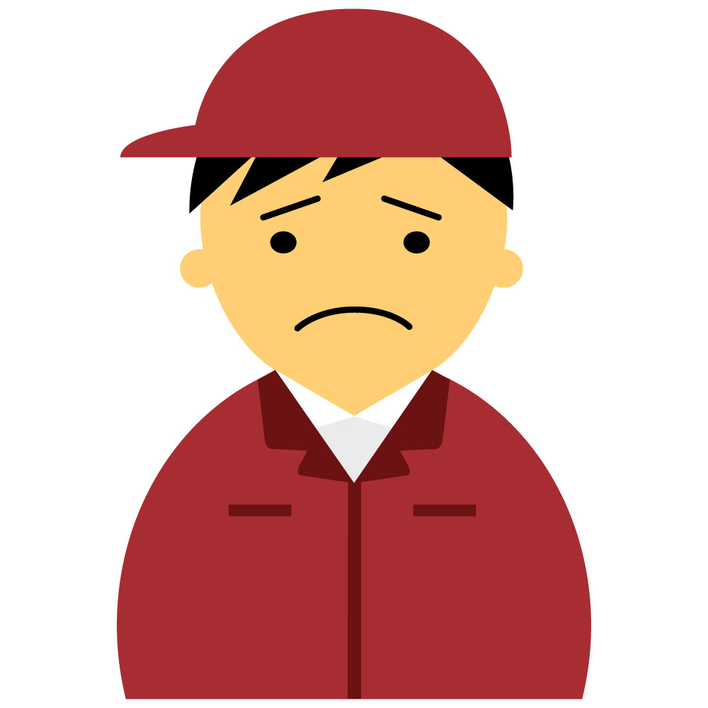 - 【困った顔】作業服の男性20代~30代のアイコン03(赤・黒髪)PNG