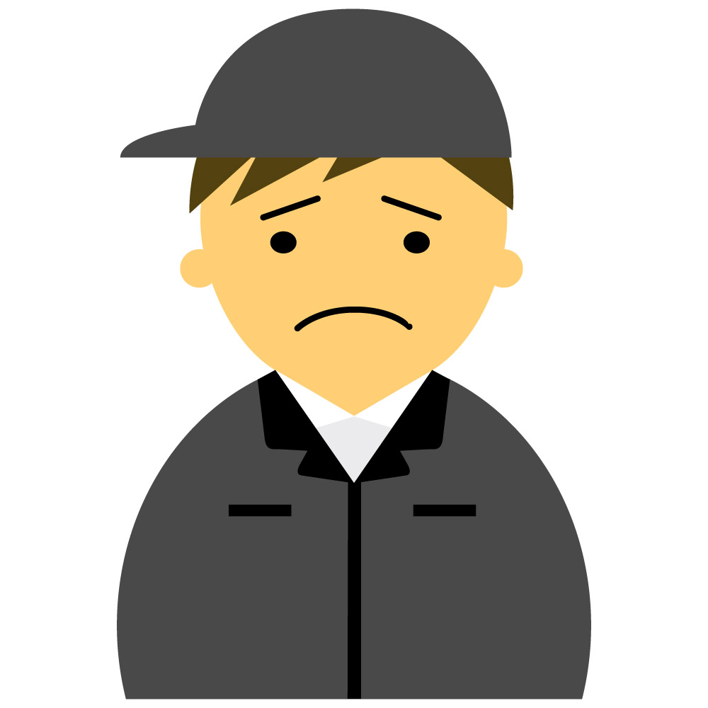 - 【困った顔】作業服の男性20代~30代のアイコン07(黒・茶髪)PNG