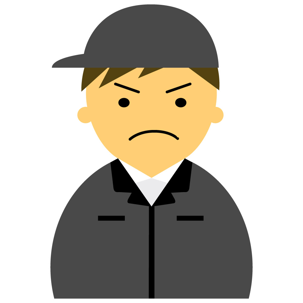 - 【怒り顔】作業服の男性20代~30代のアイコン07(黒・茶髪)PNG