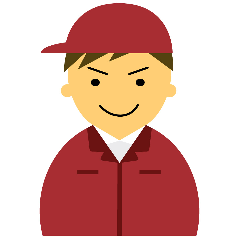 作業服の男性20代~30代のアイコン03(赤・黒髪)