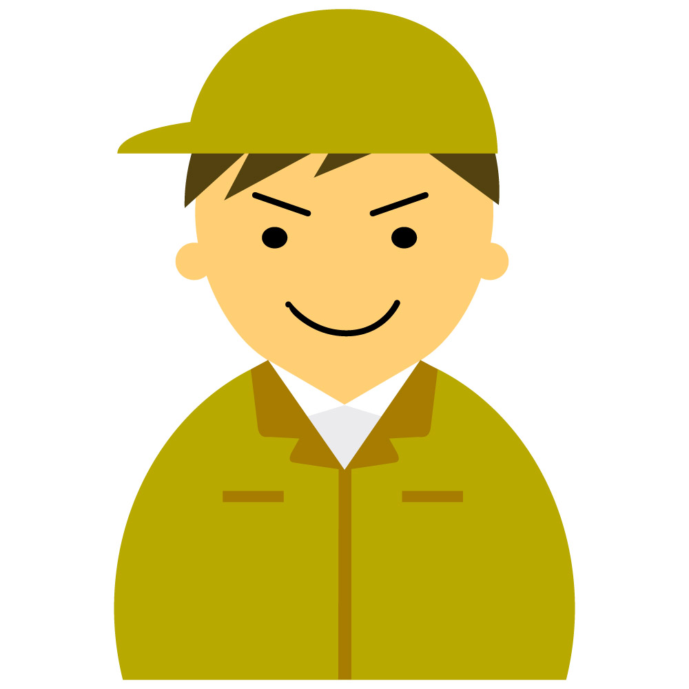 - 【普通の顔】作業服の男性20代~30代のアイコン07(黒・茶髪)PNG