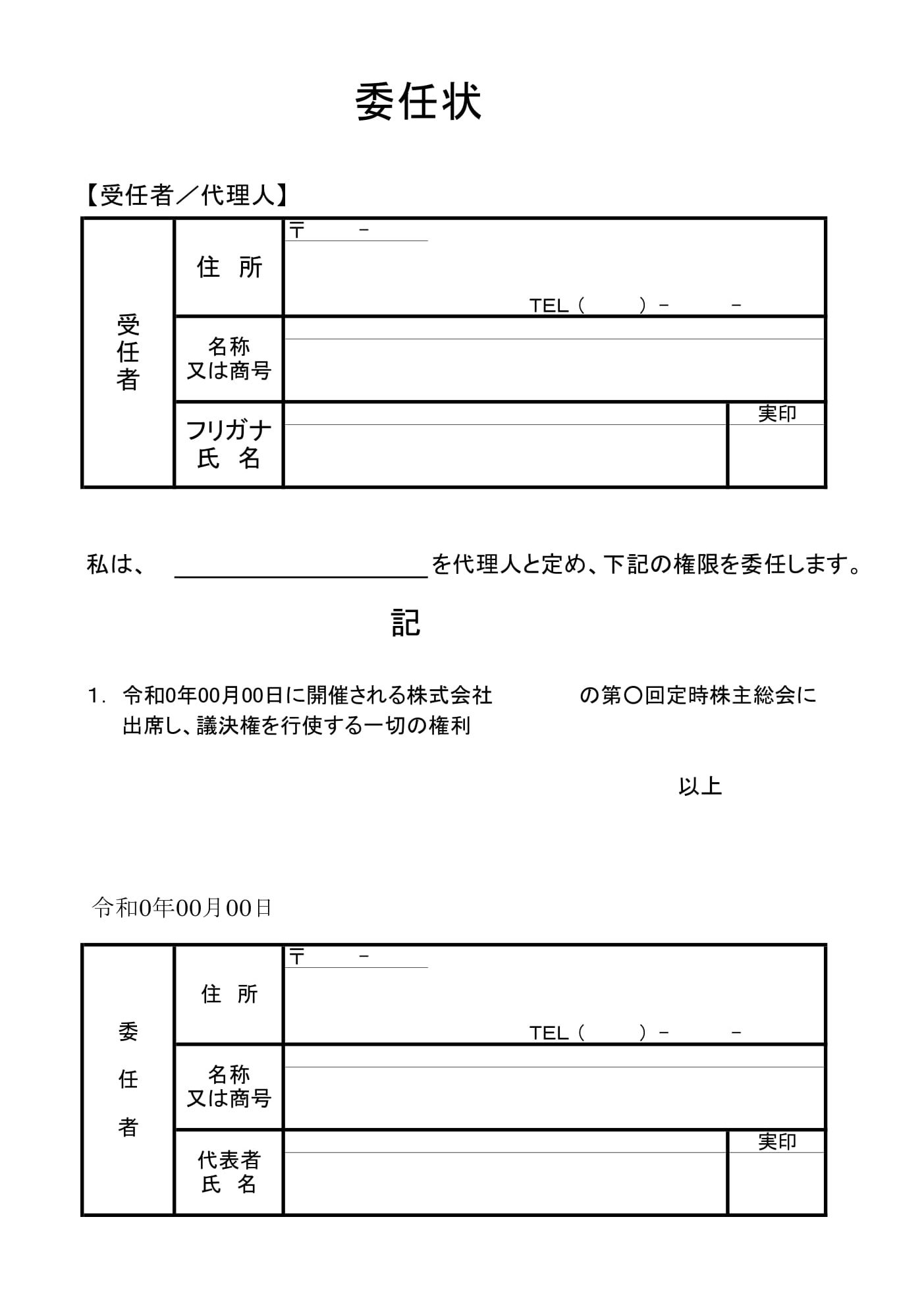 委任状(株主総会)01のダウンロード 委任状(株主総会)01のWord(ワード)の書式テンプレートを会員登録不要で、無料でダウンロードできます。テンプレート書式なので必要に応じて文章を変更してご利用ください。作成のポイント タイトルの明記書類の目的を明確にするため、「株主総会委...