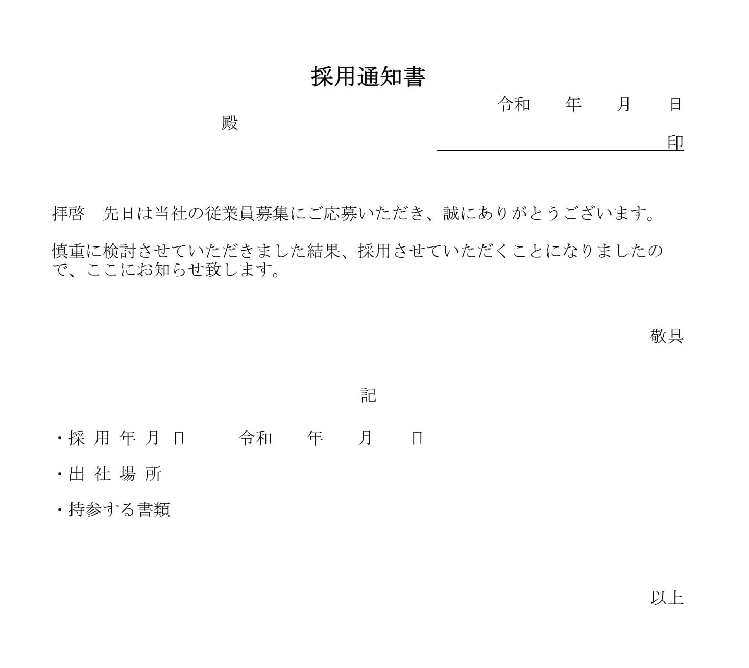 採用通知書01のダウンロード 採用通知書01のWord(ワード)の書式テンプレートを会員登録不要で、無料でダウンロードできます。テンプレート書式なので必要に応じて文章を変更してご利用ください。作成のポイント 冒頭挨拶と採用決定通知 フォーマルな構成:「拝啓」から始め、「...