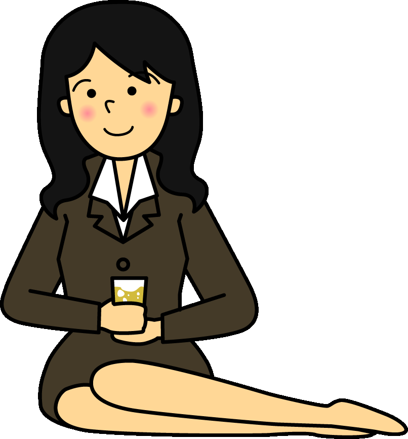 グラスを持つ女性のイラスト03(右側に足を投げ出すブラウンのスーツの女性)のGIF(ギフ)を会員登録不要で、無料でダウンロードできます。