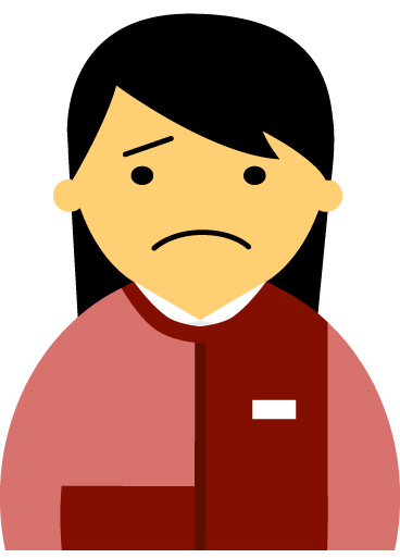 【困った顔】コンビニ店員女性20代~30代のアイコン02(エンジ濃淡2色・黒髪)【JPG】のダウンロード
