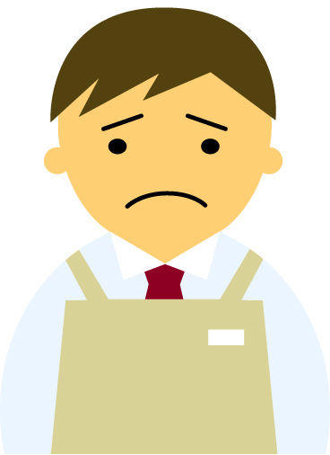 【困った顔】コンビニ店員男性20代~30代のアイコン11(アイボリーのエプロン・茶髪)【JPG】のダウンロード