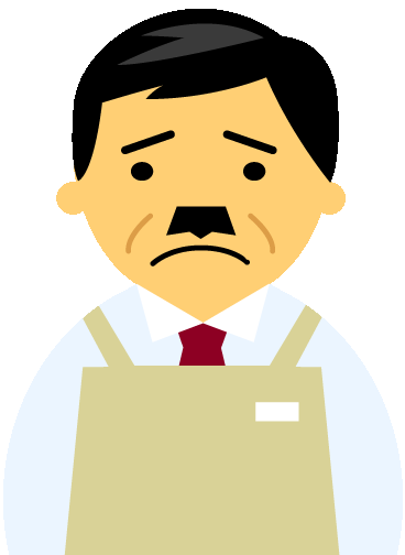 【困った顔】コンビニ店員男性40代~50代のアイコン01(アイボリーのエプロン)のGIF(ギフ)を会員登録不要で、無料でダウンロードできます。