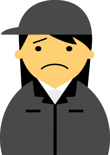 【困った顔】作業服の女性20代~30代のアイコン02(黒・黒髪)【JPG】のダウンロード