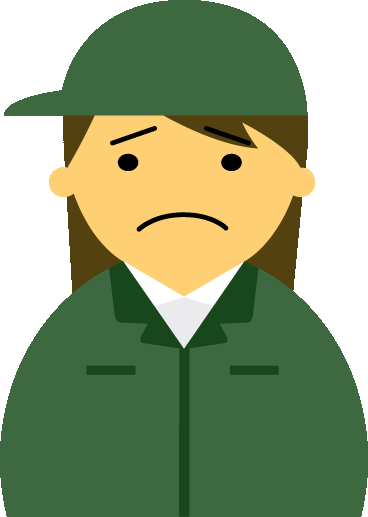 【困った顔】作業服の女性20代~30代のアイコン05(緑・茶髪)のGIF(ギフ)を会員登録不要で、無料でダウンロードできます。