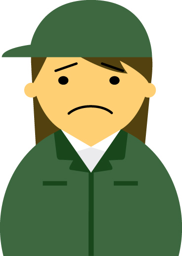 【困った顔】作業服の女性20代~30代のアイコン05(緑・茶髪)【JPG】のダウンロード