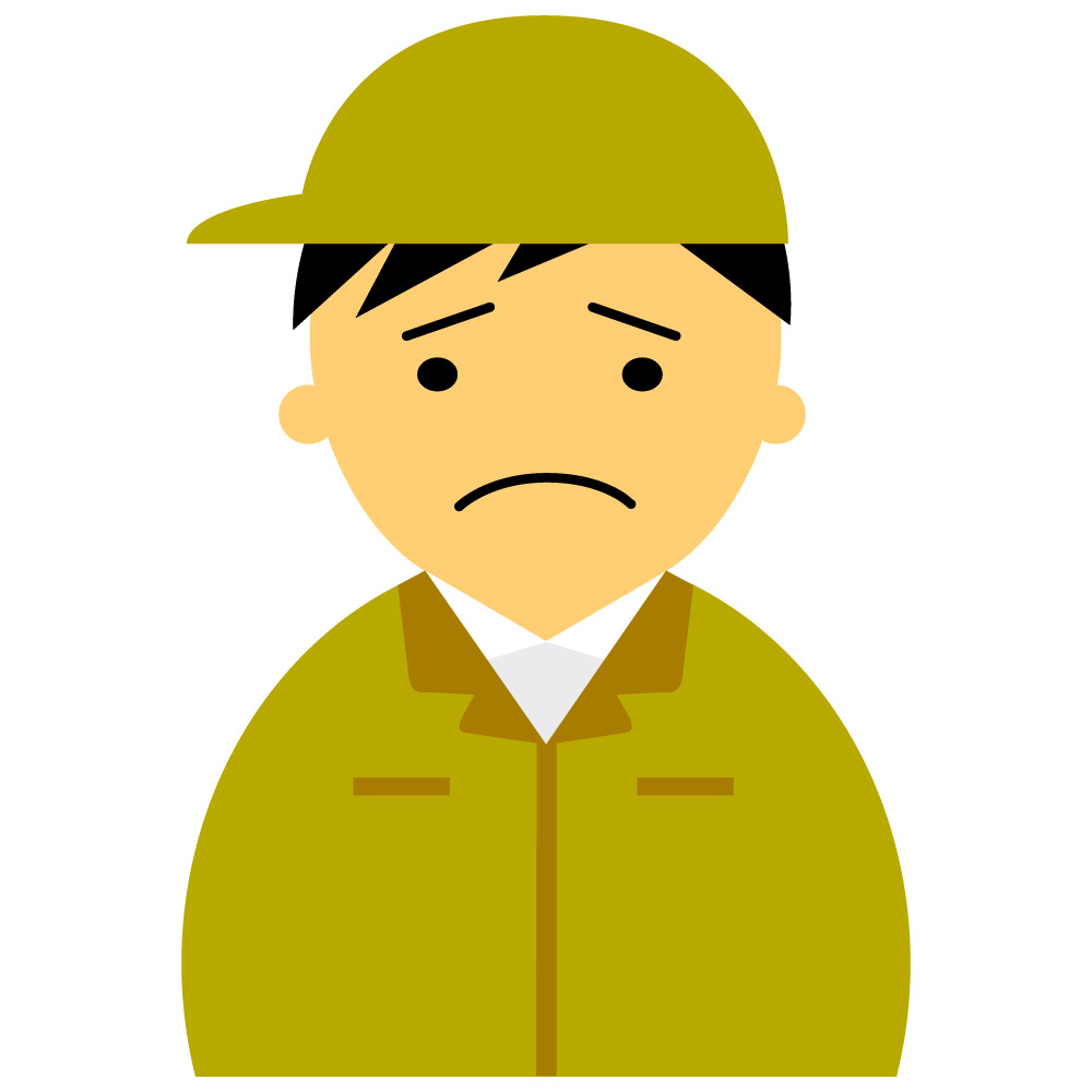 【困った顔】作業服の男性20代~30代のアイコン01(黄・黒髪)【JPG】のダウンロード