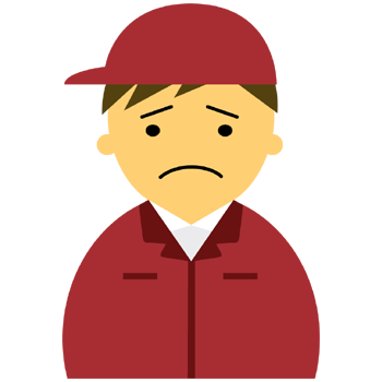【困った顔】作業服の男性20代~30代のアイコン05(赤・茶髪)のPNG(ピング)を会員登録不要で、無料でダウンロードできます。