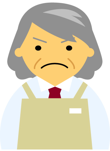 【怒り顔】コンビニ店員女性60代~70代のアイコン01(アイボリーのエプロン)【JPG】のダウンロード