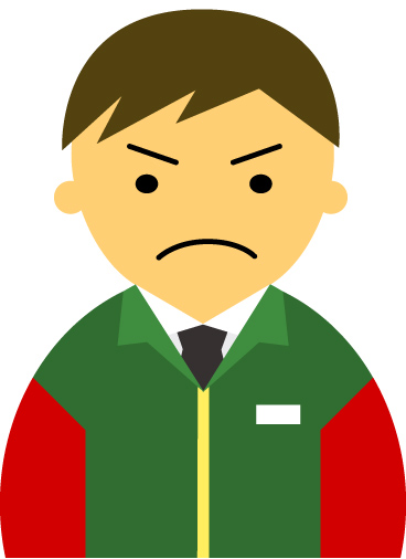 【怒り顔】コンビニ店員男性20代~30代のアイコン06(緑/袖赤・茶髪)【JPG】のダウンロード