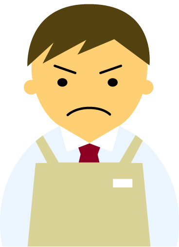 【怒り顔】コンビニ店員男性20代~30代のアイコン11(アイボリーのエプロン・茶髪)【JPG】のダウンロード