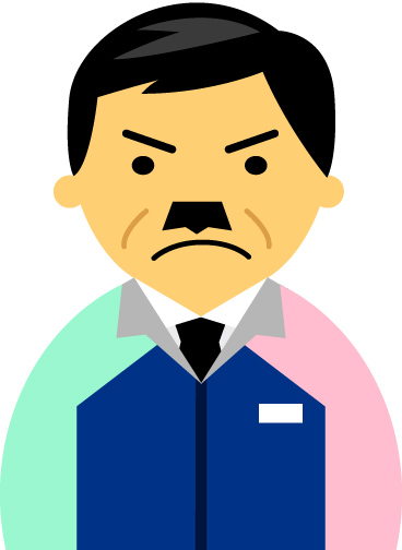 【怒り顔】コンビニ店員男性40代~50代のアイコン05(紺/袖水色ピンク)【JPG】のダウンロード