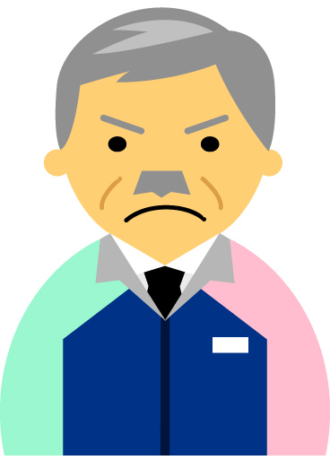 【怒り顔】コンビニ店員男性60代~70代のアイコン05(紺/袖水色ピンク)【JPG】のダウンロード
