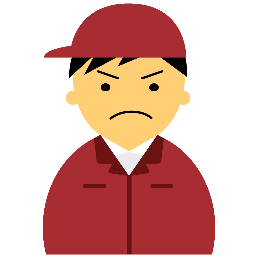 【怒り顔】作業服の男性20代~30代のアイコン03(赤・黒髪)【JPG】のダウンロード