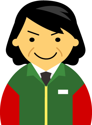 【普通の顔】コンビニ店員女性40代~50代のアイコン06(緑/袖赤)のJPG(ジェイペグ)を 会員登録不要で、無料でダウンロードできます。