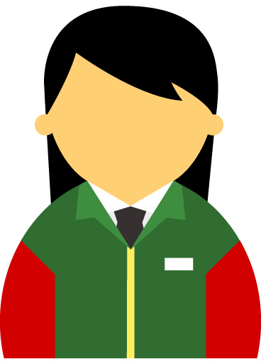 【顔無】コンビニ店員女性20代~30代のアイコン06(緑/袖赤・黒髪)【JPG】のダウンロード