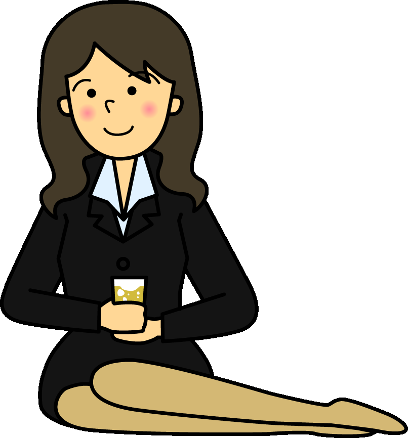 グラスを持つ女性のイラスト02(右側に足を投げ出すブラックのスーツの女性)のGIF(ギフ)を会員登録不要で、無料でダウンロードできます。