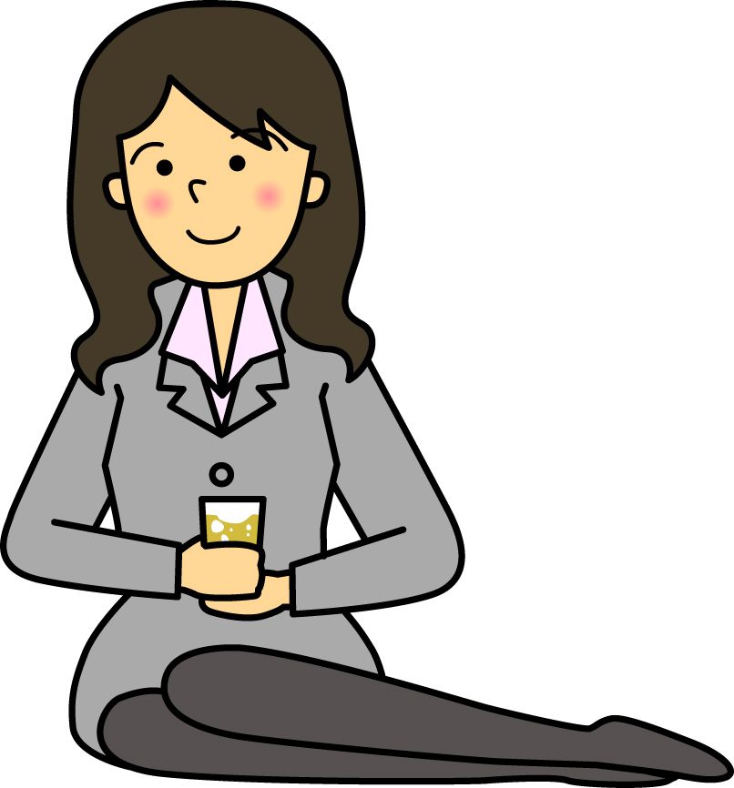 グラスを持つ女性のイラスト04(右側に足を投げ出すライトグレーのスーツの女性)【JPG】のダウンロード