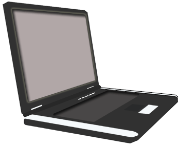 パソコンのイラスト02(開いた状態を横から見たグレーの画面の黒いノートパソコン)【GIF】のダウンロード