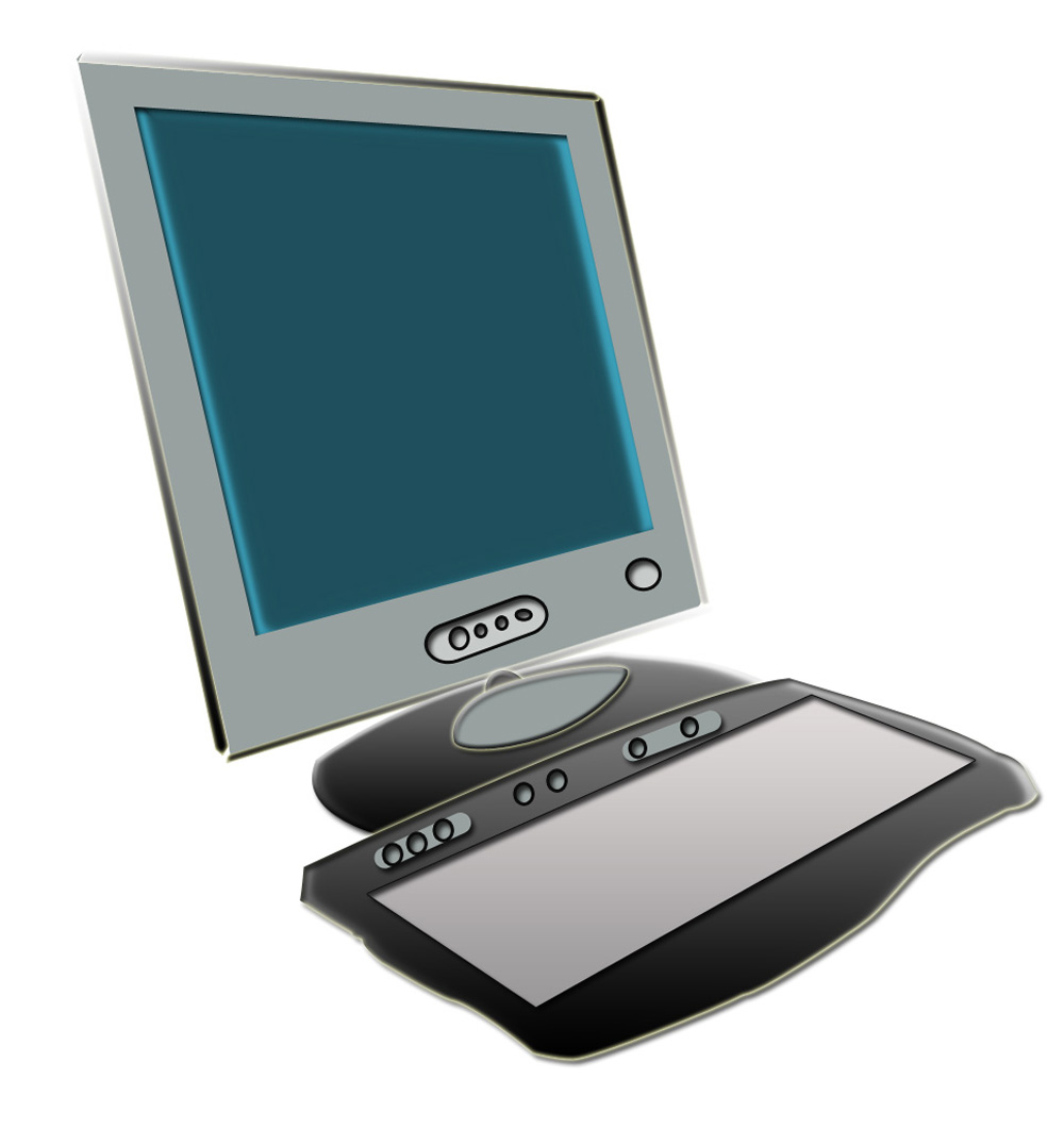 パソコンのイラスト08(横から見た立体的なグレーのモニターとキーボード)のJPG(ジェイペグ)を会員登録不要で、無料でダウンロードできます。