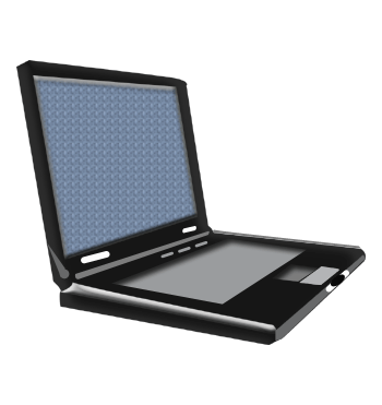 パソコンのイラスト09(開いた状態を横から見た青い画面の黒いノートパソコン)【GIF】のダウンロード