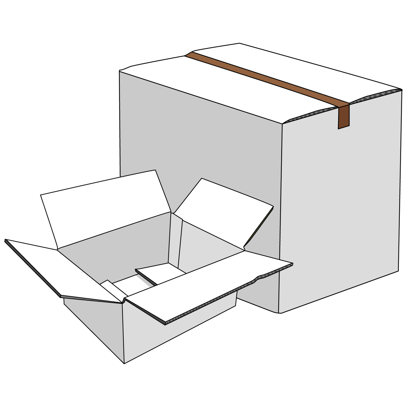 段ボール箱のイラスト01(閉じている段ボール箱と並んでいる開いた段ボール箱・ホワイト)【JPG】のダウンロード