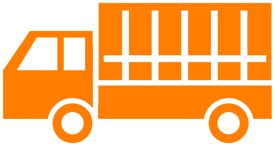 荷台に幌があるトラックのイラスト06(オレンジの幌車・ビコロール配色)のGIF(ギフ)を会員登録不要で、無料でダウンロードできます。